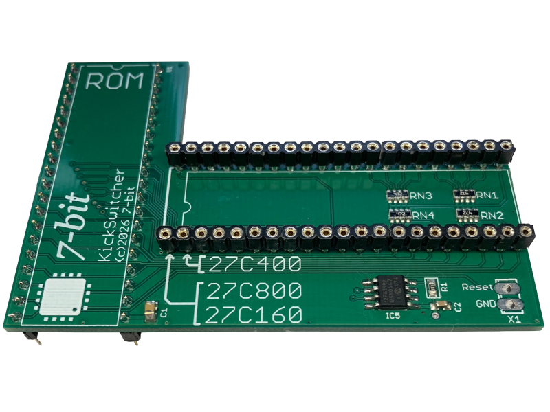KickSwitcher is a kickstart switch designed for Amiga 500/500+. It supports 27C400, 27C800, and 27C160 EPROM chips and allows switching between up to 4 kickstarts (depending on the EPROM memory capacity). Kickstart switching occurs when you press the CTRL+A+A keys and hold them down for at least 3 seconds.